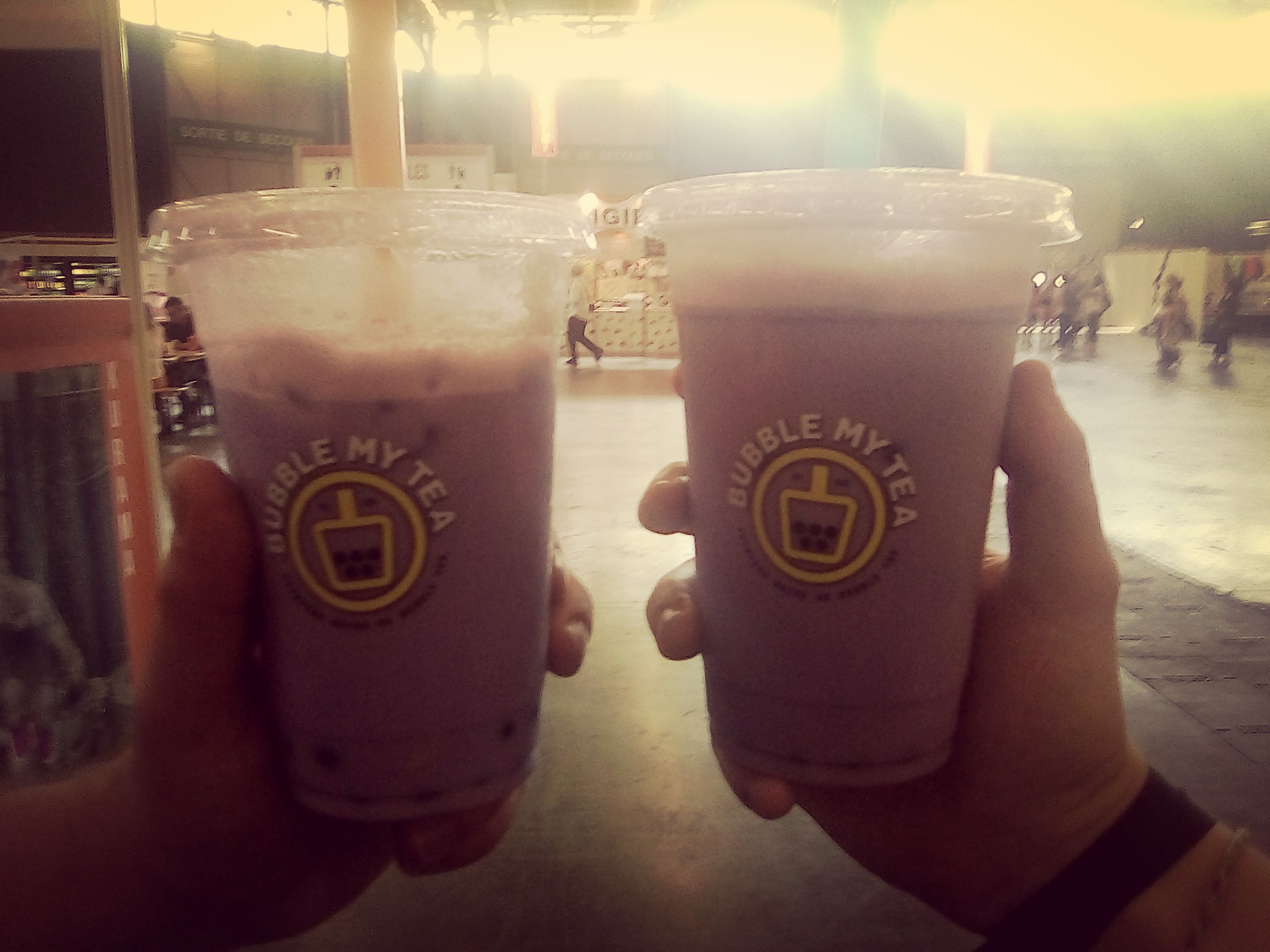Les bubble tea, notre chouchou parmi les boissons, sont des boissons à base de thé parfumé (ou de lait) avec des billes de gelée de tapioca ou au thé d’une autre saveur. Par exemple, nous avons pris des bubble tea au tarot (une racine chinoise donnant un goût se rapprochant des patates douces) avec des billes au fruit de la passion.